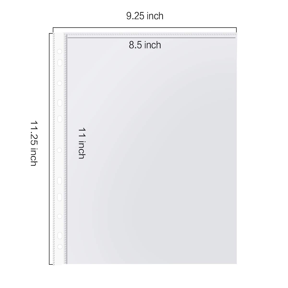 - 500 PACK SHEET PROTECTORS: PANDRI polypropylene sheet protectors are perfect for standard letter sized paper, our top loading 9.25" x 11.25" sheet protectors with 11 holes fit 8.5 x 11 paper and will keep your standard letter sized papers safe in most binders or folders. Our safe swing ring sheet protectors for 3 ring binders can hold up to 10-20 sheets depending on thickness.